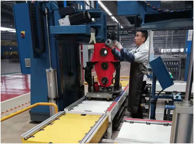 貧困戶、聾啞人楊磊在箱體裝配線現(xiàn)場(chǎng)工作