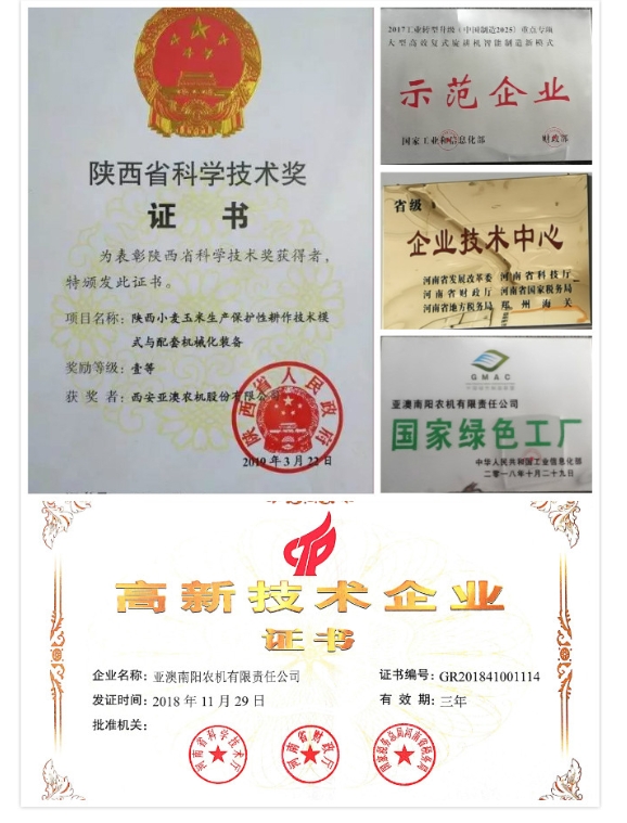亞澳農(nóng)機(jī)堅(jiān)持“產(chǎn)品就是人品、內(nèi)在是我心、外在是我臉”的品質(zhì)原則,多功能變速旋耕機(jī)、旋播施肥機(jī)、聯(lián)合耕整機(jī)、雙軸滅茬機(jī)、精量免耕播種機(jī)、深松機(jī)等產(chǎn)品在耕整機(jī)械(主機(jī)配套40-300馬力)領(lǐng)域處于行業(yè)前列, 累計(jì)取得自主專利78項(xiàng)。2018年“亞澳”商標(biāo)獲得中國馳名商標(biāo),產(chǎn)品多次被中國農(nóng)機(jī)化協(xié)會(huì)、中國農(nóng)業(yè)機(jī)械流通協(xié)會(huì)、中國農(nóng)業(yè)機(jī)械工業(yè)協(xié)會(huì)授予“AAA級(jí)信用企業(yè)”、“技術(shù)進(jìn)步獎(jiǎng)”、“產(chǎn)品創(chuàng)新獎(jiǎng)”、“全國農(nóng)機(jī)用戶滿意品牌”、“最具影響力品牌”,被國家相關(guān)部委單位授予農(nóng)業(yè)部科技進(jìn)步三等獎(jiǎng)、星火計(jì)劃金獎(jiǎng)、西安市科技進(jìn)步一等獎(jiǎng)、陜西省行業(yè)之星企業(yè),“專精特新”中小企業(yè),南陽市級(jí)科技百強(qiáng)企業(yè)等多項(xiàng)殊榮;國家型高新技術(shù)企業(yè),在農(nóng)機(jī)行業(yè)中具有較高的美譽(yù)和知名度,得到了社會(huì)的廣泛認(rèn)可。